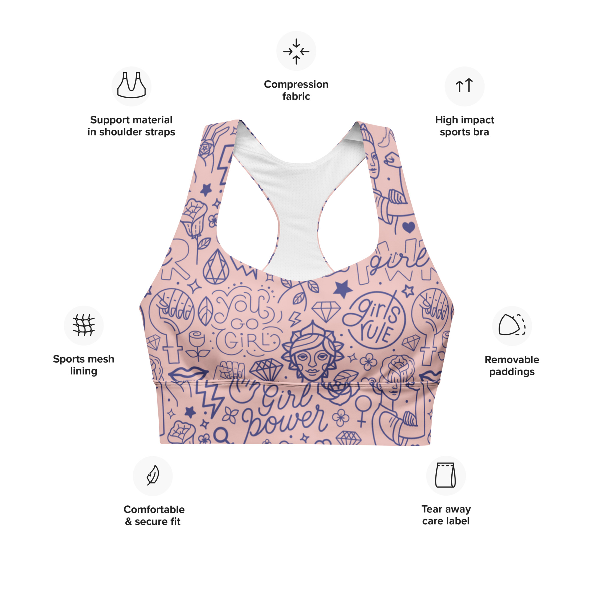 This sports bra is the perfect workout top for exercising. The compression fabric along with double-layered front and shoulder straps ensures great support while running, jumping, or pumping iron. Wear it while exercising or style it as a streetwear top on sunny days!