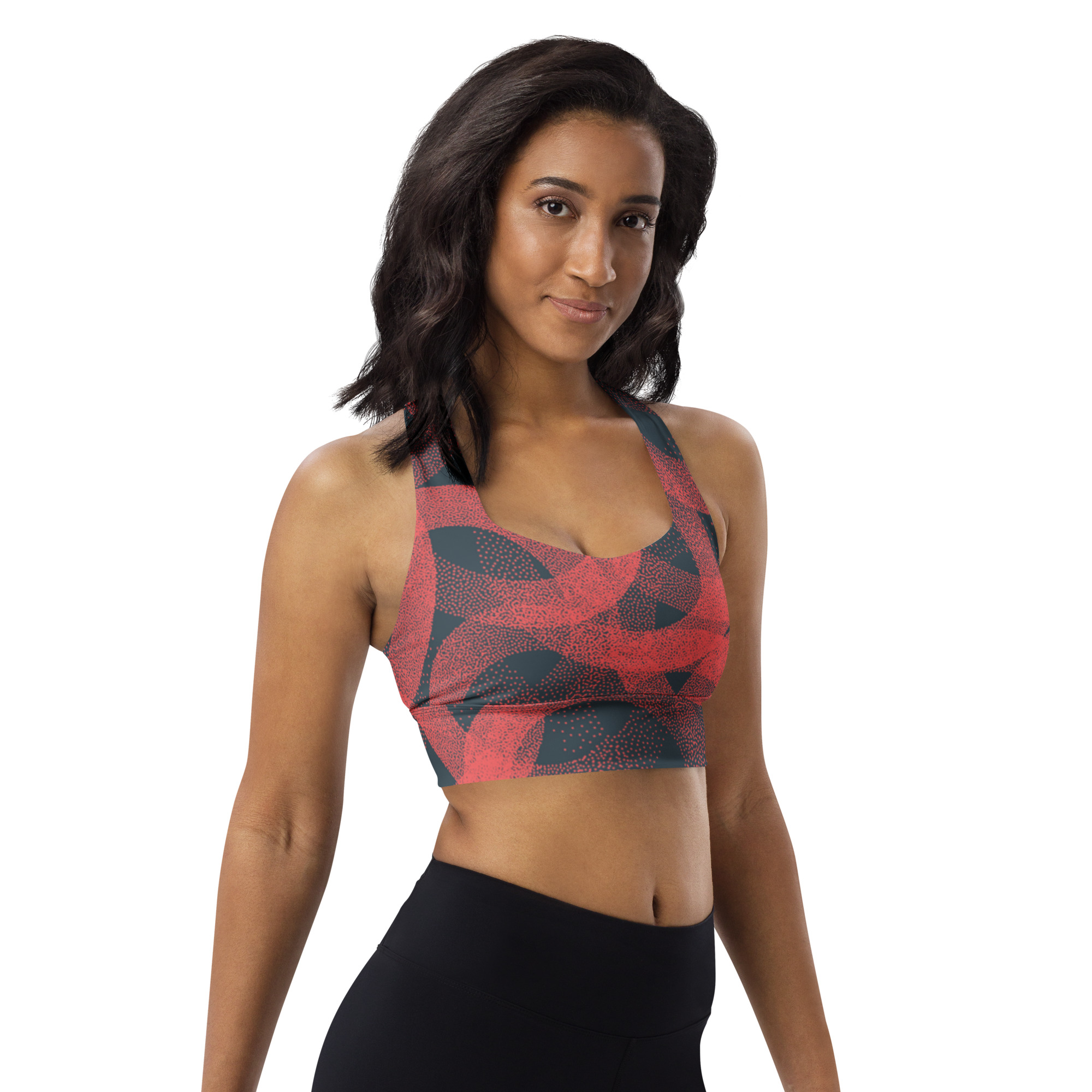 This sports bra is the perfect workout top for exercising. The compression fabric along with double-layered front and shoulder straps ensures great support while running, jumping, or pumping iron. Wear it while exercising or style it as a streetwear top on sunny days!